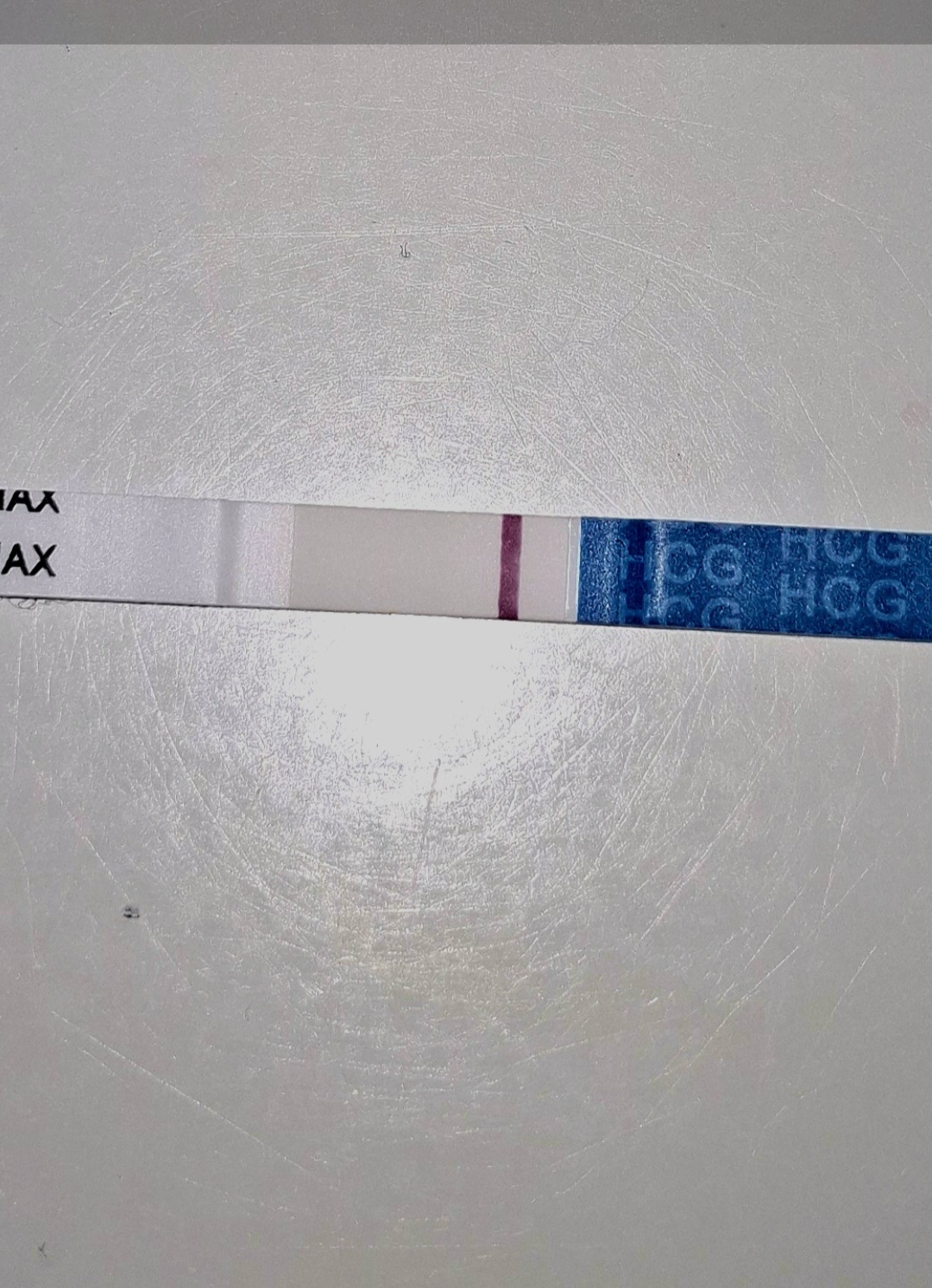 Aamun testiin piirtyi heti haalea viiva, jota tosin oli hankala vangita kuvaan. Näytti punertavalta, mutta vaihea sanoa varmasti kun oli niin hailakka. 😄
