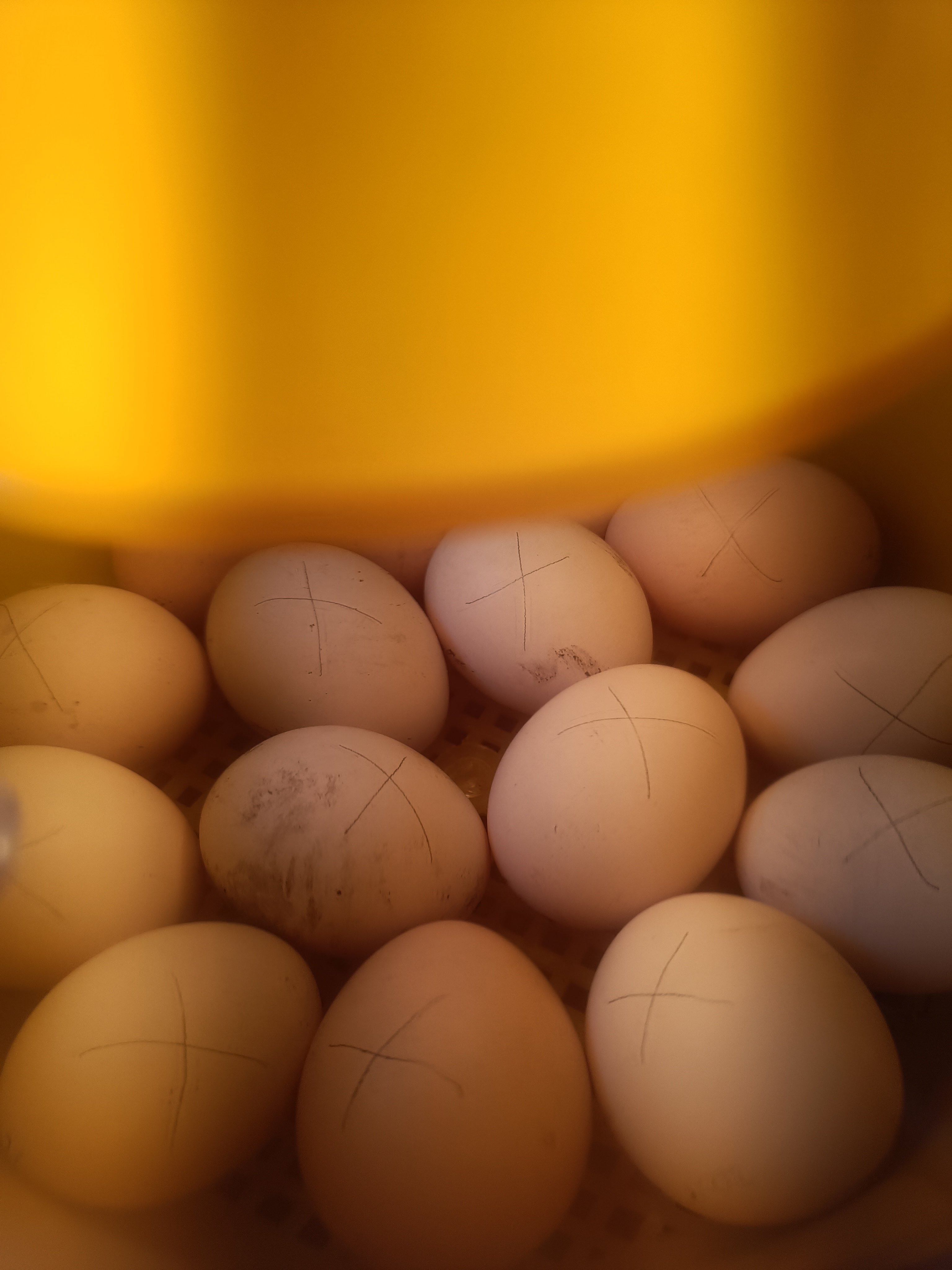 sain tutulta hautomakoneen lainaan ja latasin sen omien kanojen munilla. Toivottavasti kolmen viikon päästä ollaan iloisen perhetapahtuman äärellä