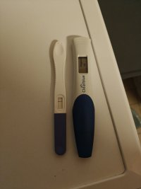 YA testi tehty lauantaina, vähän täytyi aluksi siristellä silmiä onko siinä viiva, mutta vahvistui kuitenkin selkeäksi haaleaksi🤩 ja tänään sunnuntaina tehty clearblue. Nyt jännityksellä odottelen, vahvistuuko viiva jatkossa.🥰 Hoidoilla saavutettu raskaus, joten erityisen jännittävä tilanne.❤️