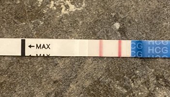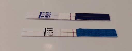 Eka varma positiivinen Clearbluen varhaisella testillä ja tänään tehty viimeinen kotoa löytynyt Pregcheckin raskaustesti. Viivat vahvistuneet koko ajan. 🥰