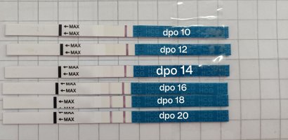 Esikoisesta sain leffaviivat dpo 16. Luulen että huomenna ei vielä leffaviivoja tule, mutta esikoisesta testasinkin aina päivän tokasta pissasta, koska huomasin että näyttää vahvempaa silloin. Nyt olen testaillut ainoastaan ekasta. Testit ovat kyllä vahvistuneet tasaiseen tahtiin, joten en hirveän huolissani ole. 😊
