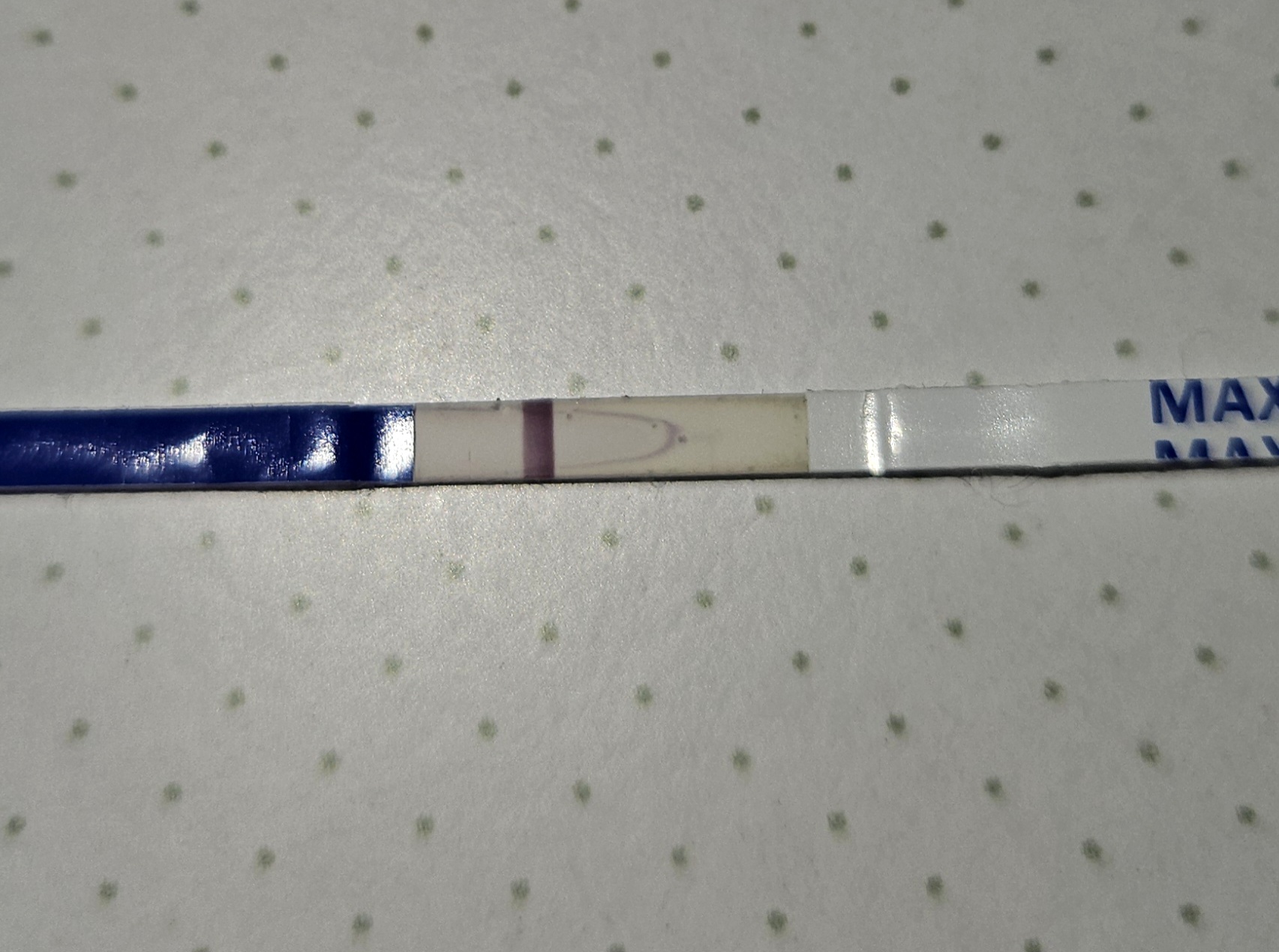 Paha sanoa mikä tuo viiva on, kyllä siinä hento viivan reuna on... Mutta liekö sitten vain viivan paikka kerta toinen viiva on noin tumma ja paksu... Huomenna tai ylihuomenna uutta testiä 👍🏻