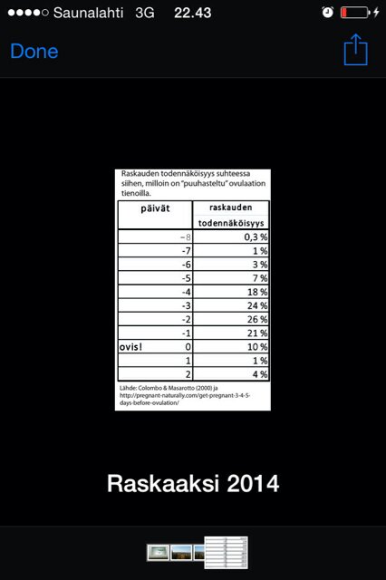 Mut Mimmu jos ootte eilen talletellu ja huomenna dpo - 1 niin sen Larissan postaileman taulukon mukaan ois just ne parhaimmat prosentit sille raskautumiselle. :) älä menetä toivoa vielä.